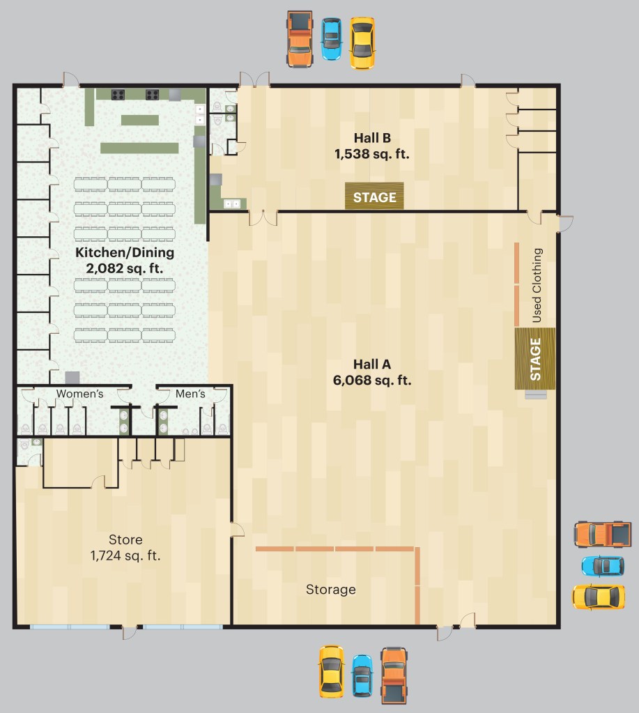 Floor Plan Floor plan Hall A – 6,068 square feet Hall B – 1,538 square feet Main Kitchen – 2,082 square feet Alcohol is not allowed.